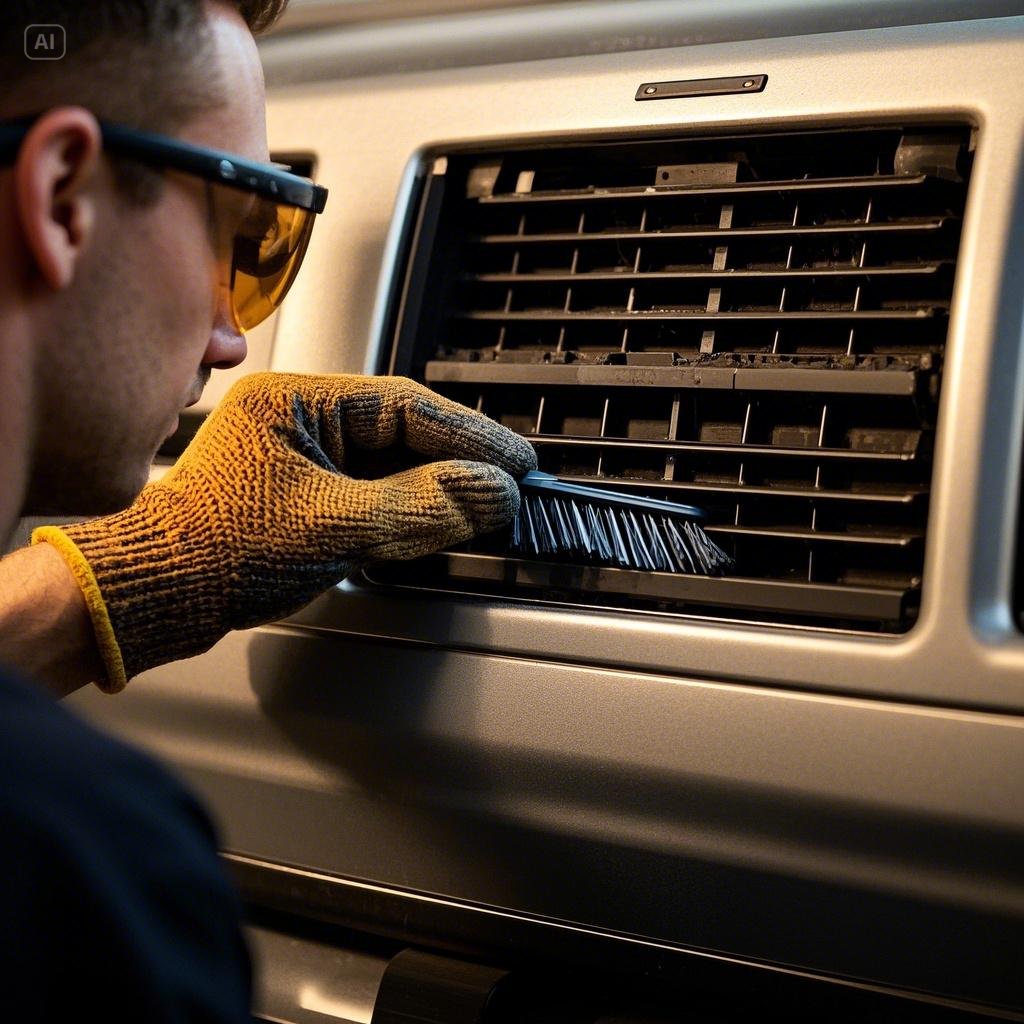 관리 방법: 송풍구는 청소 브러시나 면봉, 마른 천을 사용해 닦아주세요. 더 깊숙한 곳은 에어컨 전용 클리너를 사용하거나 정비소에서 관리받는 것이 좋아요.